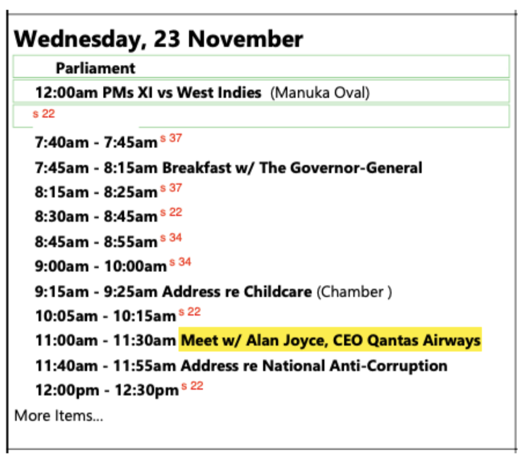 Albanese’s Diary 23 November 2022 (Source: FOI)
