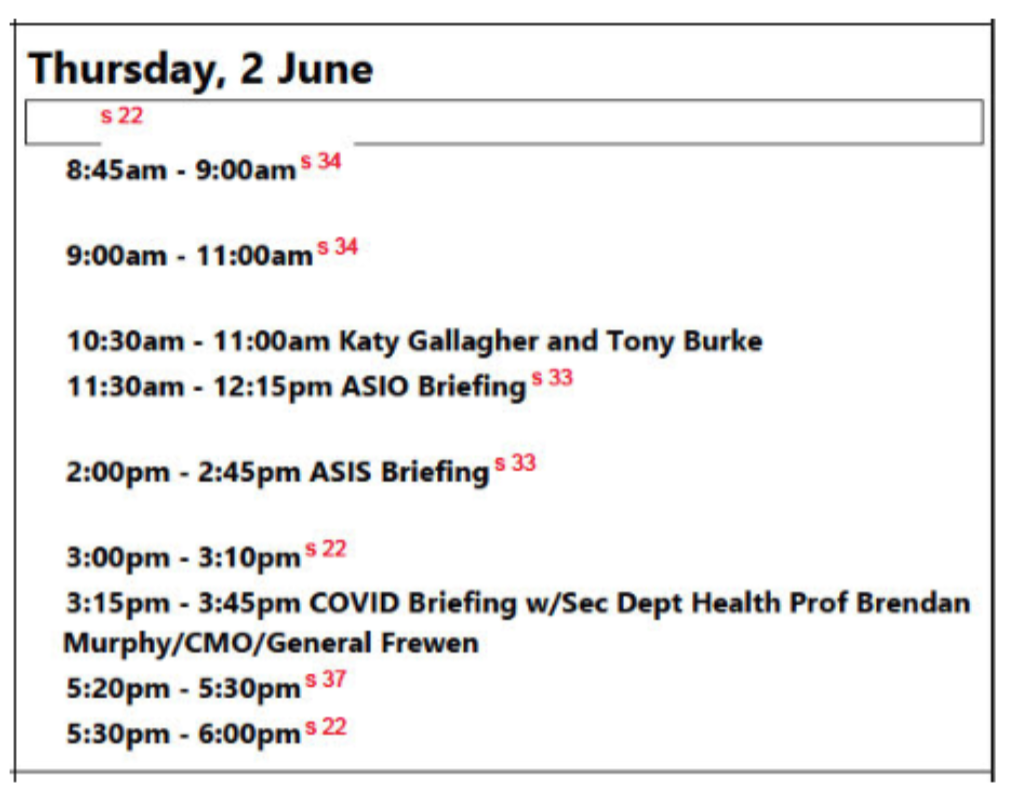 Albanese’s Diary 2 June 2022 (Source: FOI)