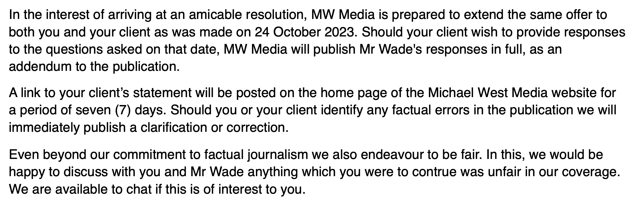 The broader point here is that it is the business model of lawyers to create work for themselves. Where they can, they will. And the regulator’s decision in this instance is not good for free speech. The matters complained of were true, thoroughly researched and in the public interest.