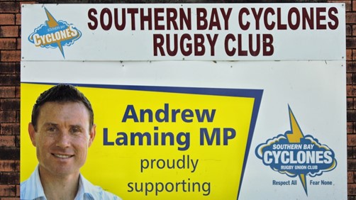 $550,000 grant was one of five grants awarded to the Southern Bay Cyclones rugby union club in the past three years through Andrew Laming.