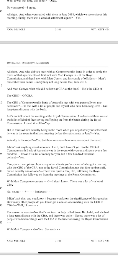 “I first met with Matt Comyn at … the Royal Commission … and then I met with Matt Comyn and his couple of offsiders … in Sydney not long before that, June 2018.