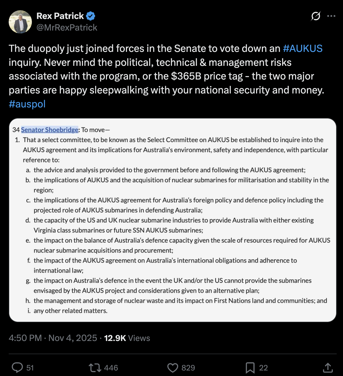 In any case, it’s clear that the Australian Government and the AFP are determined to demonstrate to the United States and the United Kingdom that there will be no tolerating protest activity that might impede or delay the movement of American and British submarines stationed at HMAS Stirling as part of the AUKUS Submarine Rotational Force – West.