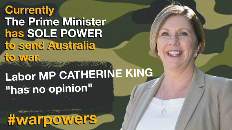 A media advisor told MWM that Labor MP Catherine King had no opinion to offer on war powers reform.