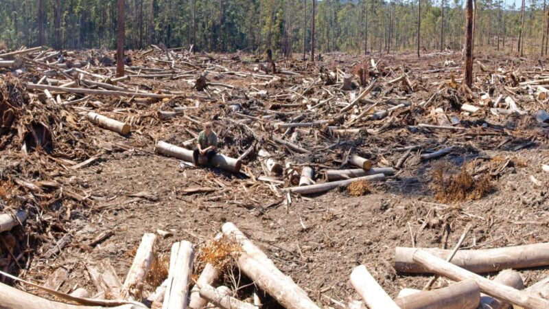Gigantic logging trucks and bulldozers tearing down trees, big old growth giants, fauna habitats, destroying endangered flora as the operation tramples everything in its path. All witnessed by devastated, angry people, desperate to end the annihilation.