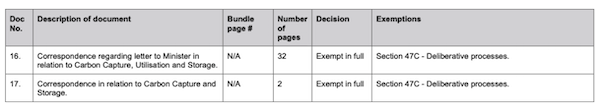 In response to the FOI request, CSIRO provided a number of public domain documents on CCS and advised of two letters it has sent to Federal ministers on the topic.
