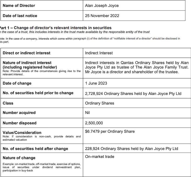 An ASX director’s disclosure shows Alan Joyce sold 2,500,000 shares at $6.75 on market on June 1. The ASX had not been notified of the ACCC sting, and Qantas shares have fallen almost 14% since the Joyce sale. Meanwhile, Australian superannuation funds, the stewards of retirement savings for millions of Australians, were not put in the picture as to the ACCC action and are 14% worse off than Alan Joyce as at Friday’s market prices.