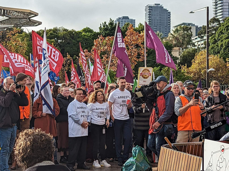Simms read from a letter by Australian Lawyers for Human Rights President Kerry Weste, who wrote, “Without the right to assemble en masse, disturb and disrupt, to speak up against injustice we would not have the eight-hour working day, and women would not be able to vote. Protests encourage the development of an engaged and informed citizenry and strengthen representative democracy by enabling direct participation in public affairs. When we violate the right to peaceful protest we undermine our democracy.”