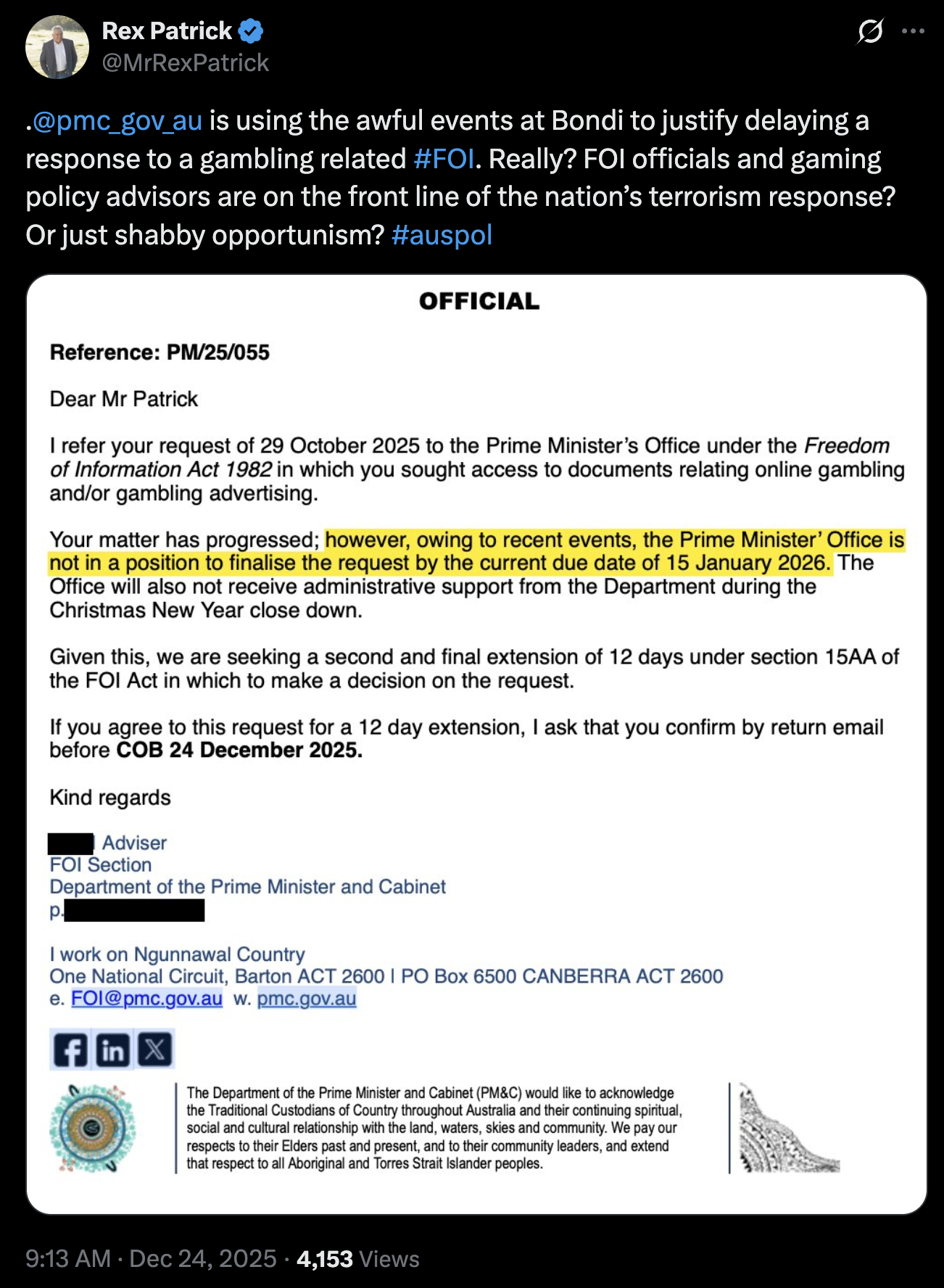 On 7 June 2025 MWM made an FOI request for access to, amongst other things, “the latest draft (or final) of the Government response to the House Inquiry into online gambling and its impacts on those experiencing gambling harm.” It revealed that 18 November 2024 32 page draft response was in existence.