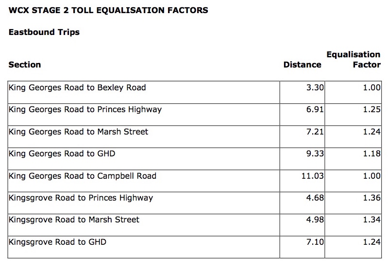 “In the case of Kingsgrove Road to Princes Highway, they are showing an uplift of 36 per cent,” says Bell. “But the “Equalisation Factor” does not align with the distance which suggests that it is not in accordance with distance-based road pricing … or even the state government’s own policy”.