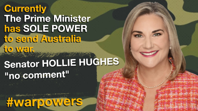 Liberal Senator Hollie Hughes didn’t respond to several requests for comment on the issue of war powers reform.