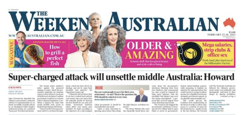 That didn’t stop the shrill AFR from claiming a calamitous Labor “raid on super”. Labor is coming after your “family nest egg”, wailed Murdoch town crier Paul Kelly today. The “risks are extreme”. His newspaper, dishonestly, has rolled out John Howard and made it all about “Middle Australia”.