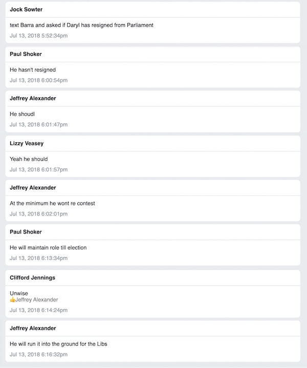Another thing the group chat reveals around that time in 2018 is that the seat of Wagga Wagga was certainly on their minds.