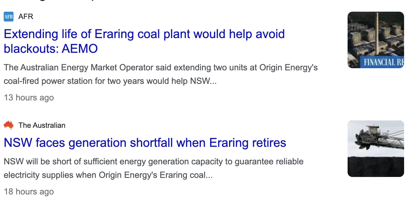 Instead of a focus on the capacity of renewable energy generation to address the forecasted gaps, the AFR has instead chosen to cover AEMO modelling regarding the effects of extending the life of Origin Energy’s Eraring coal-fired power station.