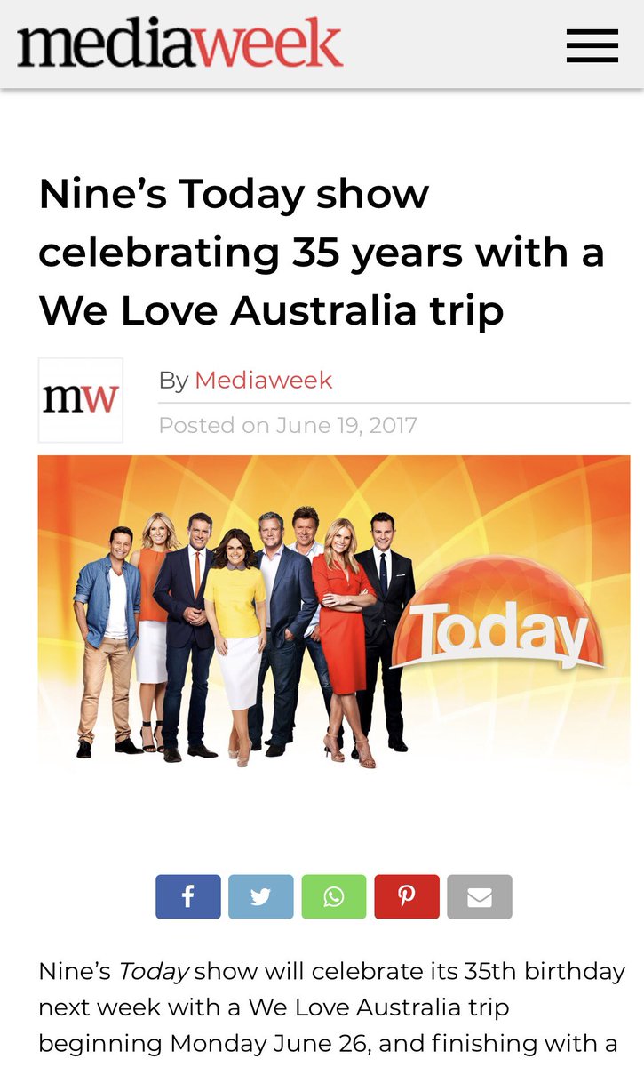 A month earlier, Karl had interviewed a partner of Foundation sponsor Deloitte on air, as the Today Show announced it was about to embark on its “We Love Australia” trip to celebrate the show’s 35th anniversary.