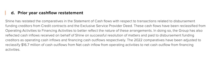 Shine reclassifies cash outflows as cash outflows, not inflows