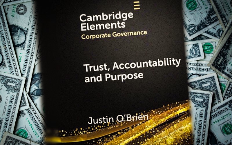 Given Mr O’Brien’s long history of misrepresentation, the title of his latest book, ‘Trust, Accountability and Purpose: The Regulation of Corporate Governance’ seems rather unfortunate.