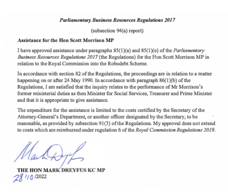 The only public news in the last 12 months that intersects with Morrison’s RoboDebt past was a revelation that Attorney-General Mark Dreyfus gave approval for the taxpayer to continue covering his RoboDebt legal fees.